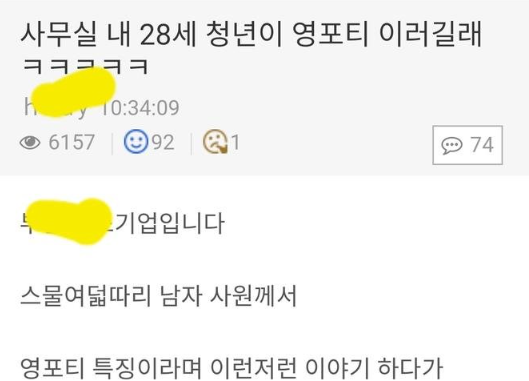 사무실 내 28세 청년이 영포티 이러길래