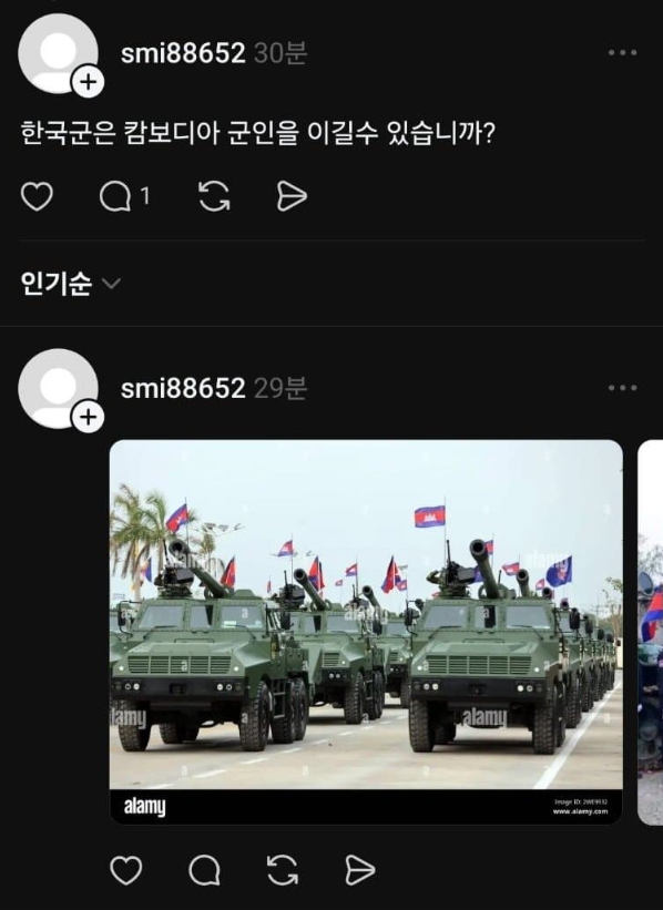 한국군은 캄보디아군을 이길수 있습니까?